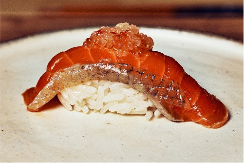 The 11-piece omakase is $95 (okonomi bolt-on handrolls cost around $10 per), well below most of the city’s current omakase pricing. It takes an hour and a half to two hours and is carried out by a Masa alum in beautiful (and beautifully chill) environs. It’s a low-key bargain…and hopefully represents the start of a shift in New York’s sushi landscape.”