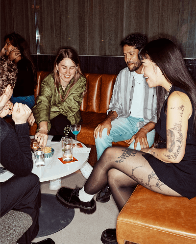 In our lounge, rich with textures of an industrial past, we serve specialty cocktails crafted with Asian spirits and flavors, and an izakaya-inspired bar food menu.