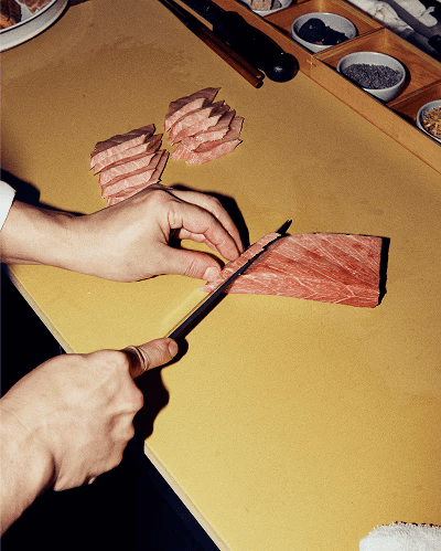 Tucked beneath the Manhattan Bridge, Kinjo is a 14-seat omakase counter and cocktail lounge bringing East Asian flavors, refined design, and neighborhood soul.”